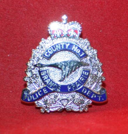 OBSOLETE, County No. 1, GRANDE PRAIRIE Police Dept. Collar Badge.