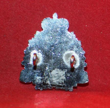 OBSOLETE, County No. 1, GRANDE PRAIRIE, (Alberta) POLICE DEPT, collar badge. Bright silver coated metal, Queens Crown, with red and blue enamel in design. Bird facing to left. 32.79mm high by 31.30mm wide. Lug fasteners. Excellent.