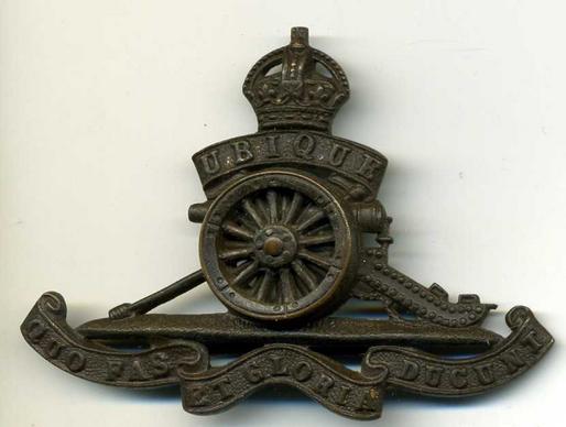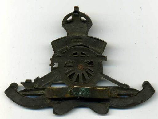 OFFICERS OSD Royal Artillery Cap Badge. Dark bronze, maker stamped FIRMIN LONDON on the back. Fold over tang fasteners.