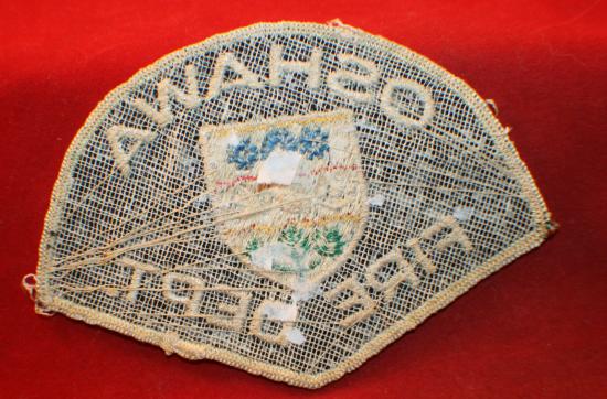 Oshawa Fire Department Cloth Shoulder Flash / Patch. Used condition. Glue & paper residue on the back.
