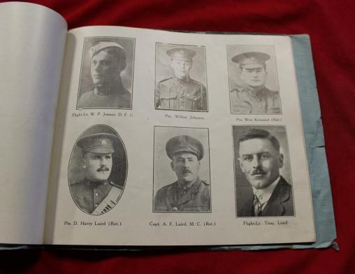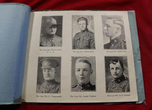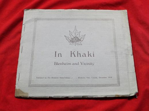 Published by the Blenheim News Tribune December 1918. 32 pages with 6 black and white pictures per page (192 pictures). Cardboard cover, showing use and wear, staple binding. Last few pages have been correlated in upside down! A great research tool from this area of Ontario.