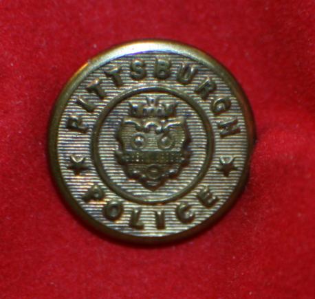 Pittsburgh Police Uniform Button - Old Obsolete style / design.Beginning to show age toning to gilt brass metal. Loop on the back. 13mm wide. Maker stamped AA QUALITY CO WATERBURY.