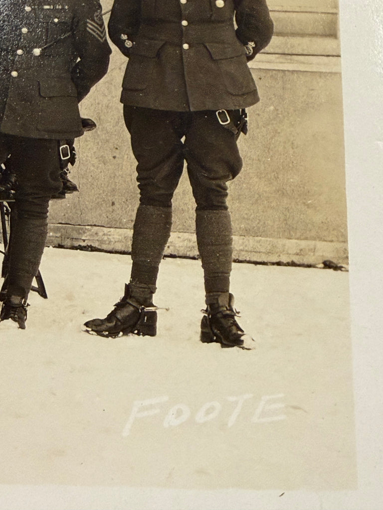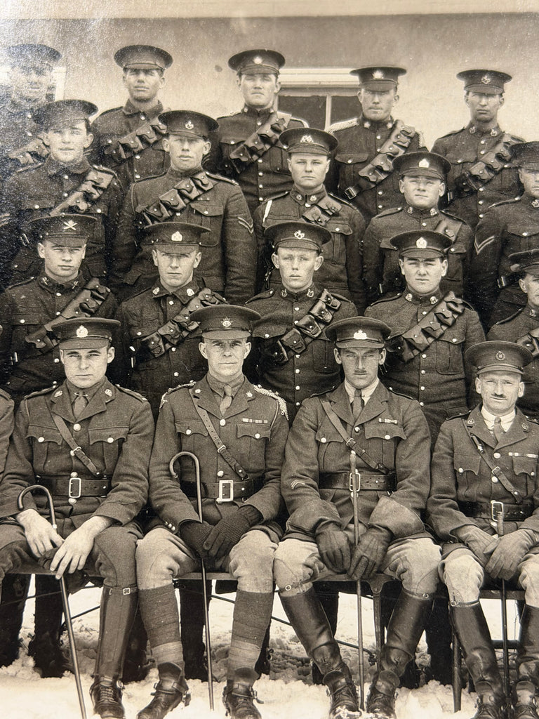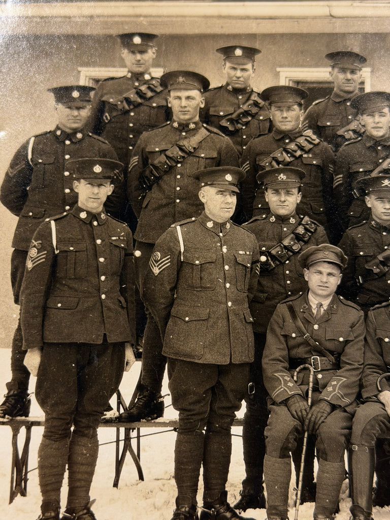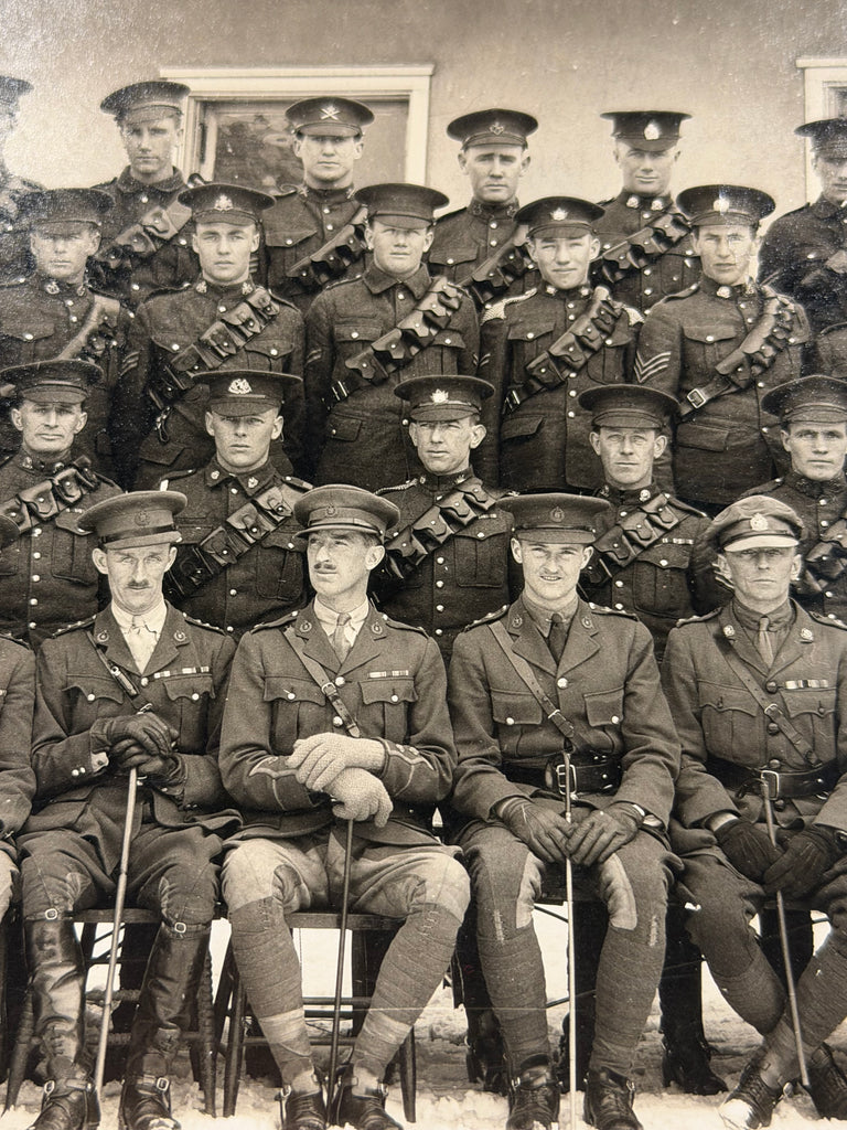 A group picture of soldiers and officers. Post WW1, pre WW2. Picture is taken by Foote Studios (from Winnipeg). Many different badges shown including Lord Strathconas Horse, Fort Garry Horse, Manitoba Mounted Rifles, Hussars, 1st Mounted Rifles, 16th Cdn Light Horse. Picture was removed from frame as the glass broke. Just under 18" x 8"