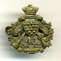 Pre WW1 43rd Regiment, Duke of Cornwall's Own Rifles Collar Badge. Brass, with lug fasteners. Mazeas Pre 14 refers MM142, 1907 design.