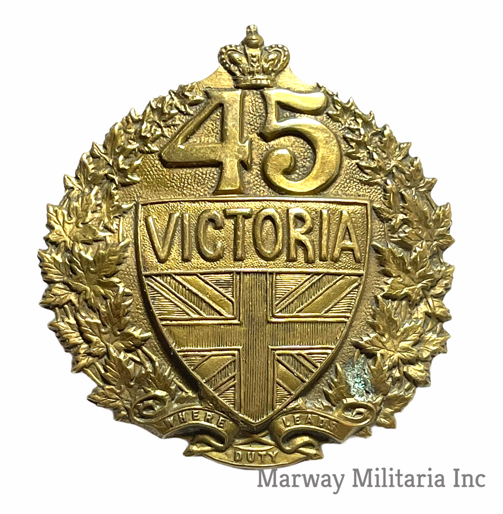 Small Victorian Crown over number 45. Brass metal, lug fasteners. Mazeas Pre '14 refers MM145