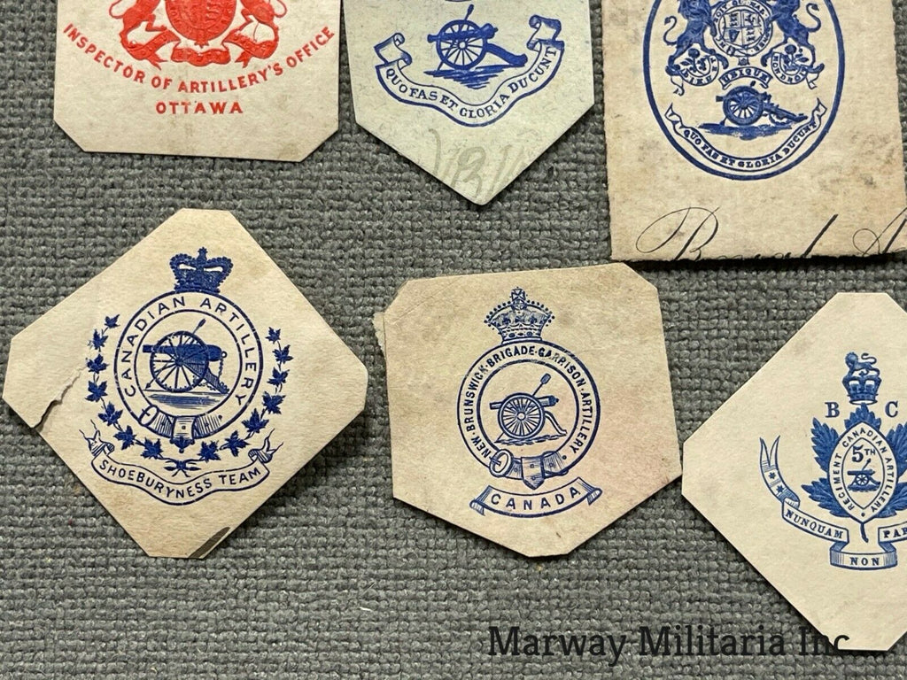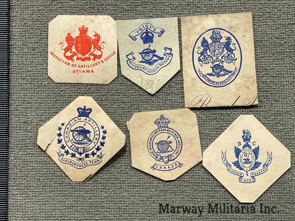 Pre WW1, Lot of 6, Early Canadian Artillery Regiments Paper Crests