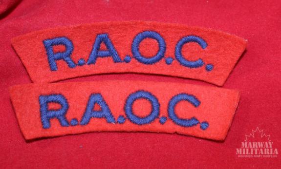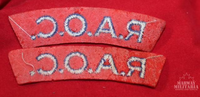 Royal Army Ordnance Corps. Blue on red. * multiple pairs available at check out.