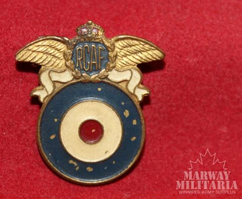 A nice brass metal pin with a replaced pin on the back. Wear to the colouring. From the collection of Warren Carroll.