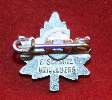 RCAF, Occupation Force's, Germany, No. 4 RCAF RAIDERS, members pin. Small, 15.72mm x 14.00mm wide, silver coated with red enamel pin. Pin back fastener. Maker marked, F.SCHMITZ/HEIDELBERG on back. A pin given to members of the RCAF Raiders Hockey Team who played in Occupied Germany in the 1950-60's. Excellent.