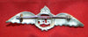 RCAF, Royal Canadian Air Force, Sweetheart Pin, Pilots. Kings Crown, wings with letters RCAF attached to centre wreath. Made of a soft metal, with a silver coating, black in deep part of feathers. Pin back fastener. 2 5/8" wide.