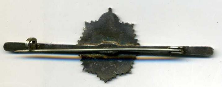 ROYAL ARMY SERVICE CORPS SWEETHEART PIN. British, Kings Crown with red enamel in over Sun Burst with circle banner with motto on it and bottom banners with ROYAL ARMY SERVICE CORPS on the, backed with blue enamel with GVIR in centre. Silver but not hall marked. Badge mounted on a long, 65mm round bar, with pin back, which is marked STERLING SILVER. Badge is 20mm x 20mm. Nicely made.