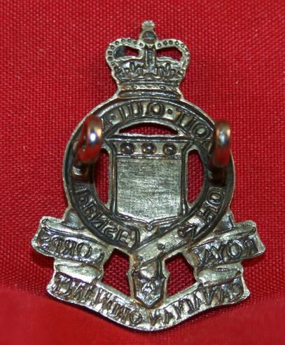 Royal Canadian Army Ordnance Corps Collar Badge.Bright gold coated, 32mm high by 23mm wide. With lug fasteners. Tall and Narrow variation.