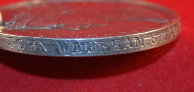 Full Size, replica. Court mounted. New mint condition. Stamped along edge JOHN WAREHAM, SH CORP 2ND ?????? H.M.S. BOSCAWEN