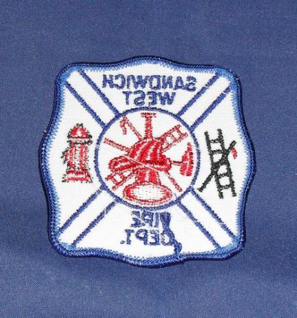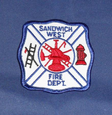 Sandwich West Fire Dept Shoulder Patch. Embroidered. Approx 3" by 3". New condition, not worn.