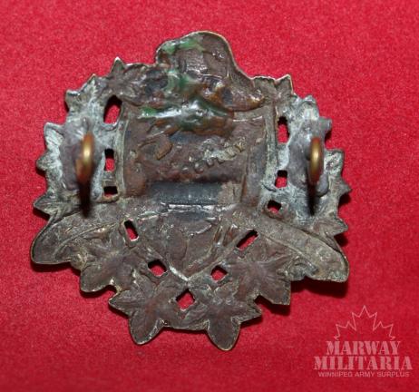 1936 design, dull brown coated brass, with brass showing due to wear, clear lacquer type coating has been applied. This is the large Collar for this unit, Beaver facing to right, 40.37mm wide by 40.16mm high, SCULLY made, lug fasteners have been replaced. Mazeas M139.