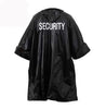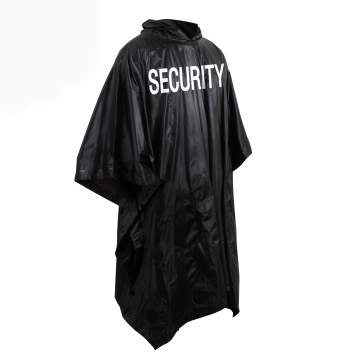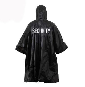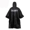 Security Rain Poncho is heat sealed and features a black vinyl with white security printed on both front and back.
