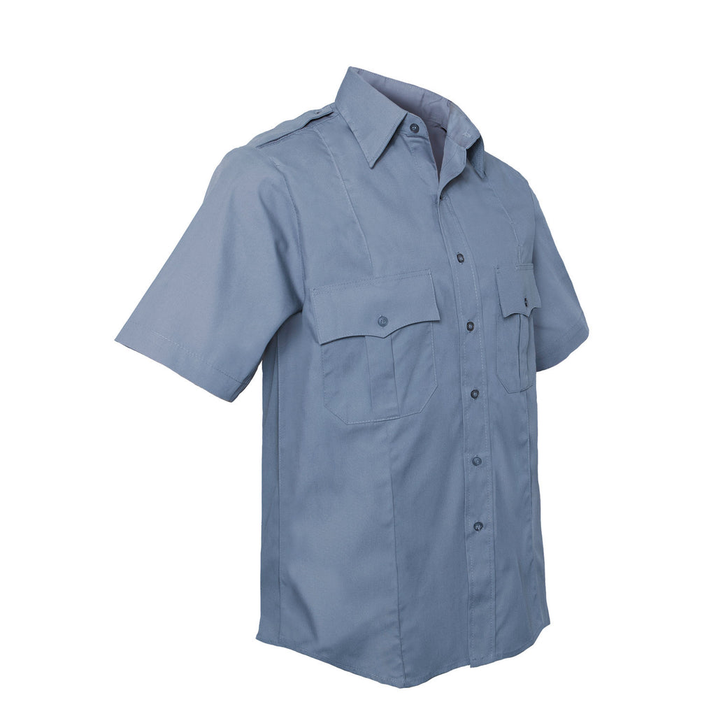 Light Blue Police and Security Short Sleeve Uniform Shirt has been designed with comfortable performance material while maintaining a sharp professional look with sewn-in military creases and permanent collar stays.