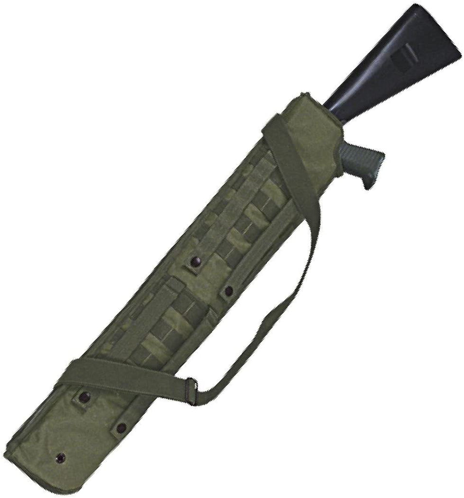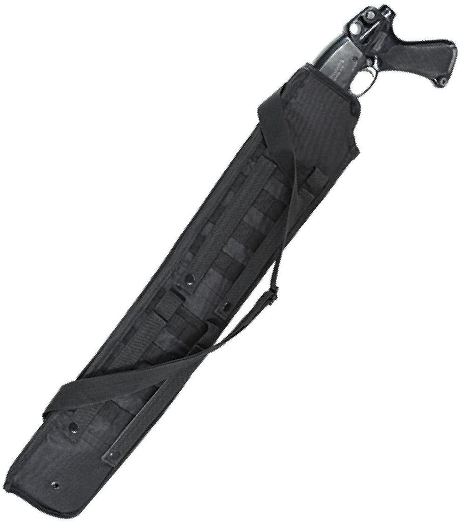We've added some back up to our shotgun scabbard in the form of an attached 18-Inch machete sheath. This MOLLE compatible shotgun scabbard is designed to give you a safe, convenient way to transport your shotgun by strapping it to your backpack, rucksack, or padded weapons case. It can also be slung across your back with the adjustable, removable nylon web sling, allowing you to draw it quickly when needed.A clever person will undoubtedly find many other suitable locations where the scabbard can useful to protect your shotgun from dirt, sand and weather while allowing quick and easy access.