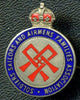 SOLDIERS SAILORS & AIRMENS FAMILIES ASSOCIATION Pin. British silver metal pin. 32mm high by 24mm wide, pin back, J.R. GAUNT LONDON maker marked. Kings Crown, with red enamel in it over outside circle banner with words, SOLDIERS SAILORS AND AIRMENS FAMILIES ASSOCIATION . On blue enamel with Cross A's, in red enamel in centre. Nicely made pin.