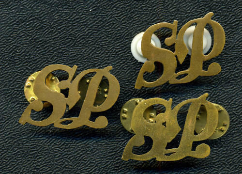 OBSOLETE. SOUTH AFRICAN STATE PRESIDENT'S GUARD, 1st Type, Collar badges. OWEN 1000. Lot of 3. Brass, letters S P, in script. 22mm high. Clutch pin fasteners, excellent.