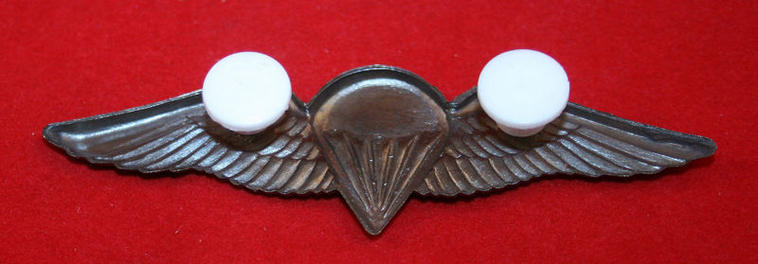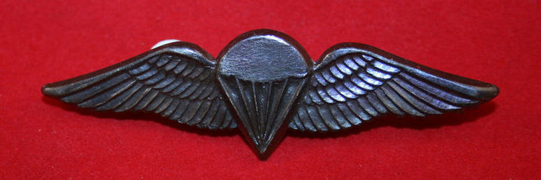 South African Parachute Wing. All one color, brown coated metal. Clutch pin fasteners. Not in Owens, similar to C308, that I can find. 3" wide.