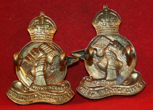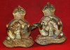 South African "Q" SERVICE CORPS Collar Badges, a matched pair. Brass metal, small greenish stain spot of wing of the fist facing right. Lug fasteners. OWEN 1051 1052.