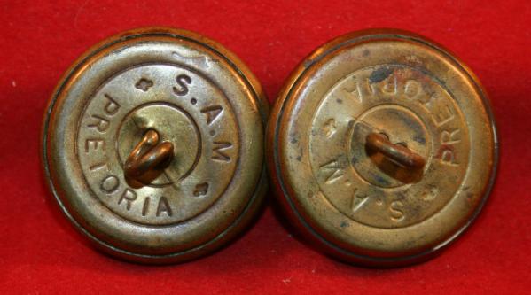 SOUTH AFRICAN RAILWAY POLICE button lot. Lot of 2. KINGS Crown over Coat of Arms with SAR SAS banner. 28mm size, maker S.A.M. PRETORIA. Both show wear but detail still quite good.