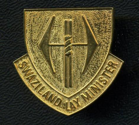 SWAZILAND LAY MINISTER Badge. Gold plated shield with bottom banner with words, SWAZILAND LAY MINISTER on it. 2 clutch pin fasteners. 35mm x 35mm. Nicely made, no idea who might have used this.