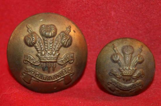 3rd Carabiniers, Prince of Wales's Dragoon Guards, 1928 on issue, both dull copper bronze metal, 26.08mm, maker GAUNT LONDON & 18.95mm, maker MADE IN ENGLAND, nice stampings. Lot of 2. Ripley 23.