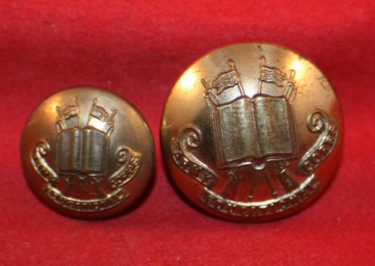 The Army Educational Corps Uniform Button Lot of 2. Dull gold/brass metal.Circa 1920-1946. 25.73mm (J.R. GAUNT & SON, LONDON) & 18.88mm (J.R. GAUNT & SON LONDON) sizes, nice. Lot of 2. RIPLEY 539.
