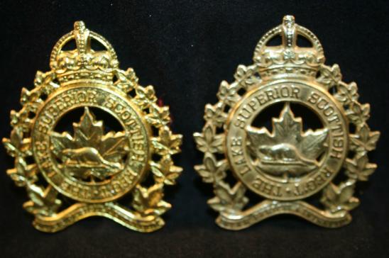The Lake Superior SCOTTISH , 1950 Cap Badge Lot. Both brass, metal, lug fasteners, slightly different striking. Mazeas M173. Lot of 2.