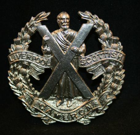 THE QUEEN'S OWN CAMERON HIGHLANDERS, The Liverpool Scottish Cap Badge. White metal, lug fasteners, excellent stamping. KK2364.