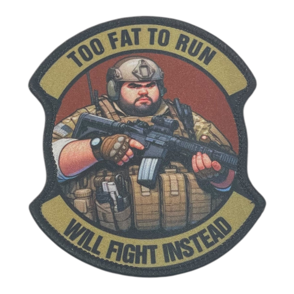 Too Fat To Run Will Fight Instead Velcro Morale Patch