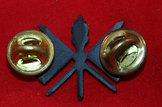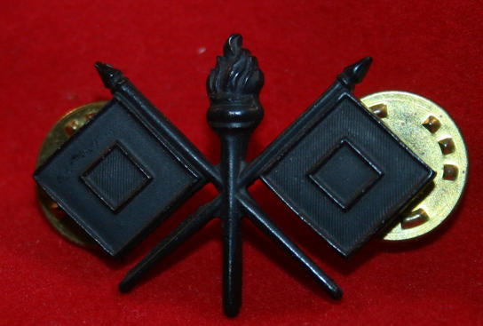 US Officers Collar Badge: Signal Corps - Subdued. Pin back. Stamped G I.