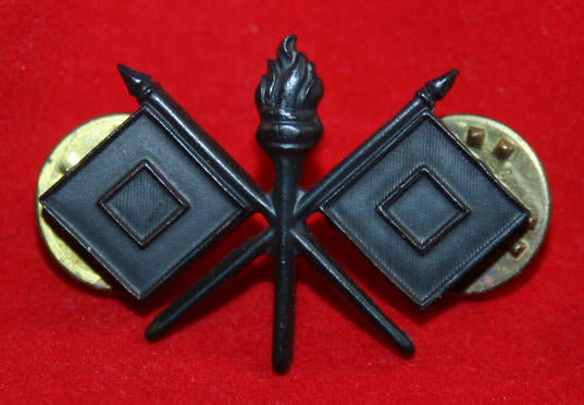 US Officers Collar Badge:Signal Corps - Subdued. Pin back. Stamped G-1.