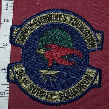 USA: 36th Supply Squadron Jacket Crest. New Condition. Size to the left in inches.