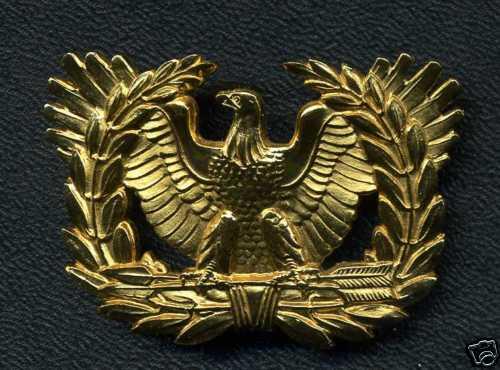 USA ARMY: Warrant Officer Cap Badge. Bright Brass. Two pin fasteners on the back. Stamped S 21.
