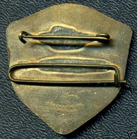 USA, darkened brass pin with sun burst/Snake/triangle shaped with crest of the MILITARY ORDER OF THE SERPENT in the centre. Back has double pin fastener. Maker marked GREENDUCK CO. CHICAGO. Not sure what era. This order formed 1904 for Veterans of the Spanish American War, nice pin.