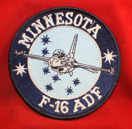 Jacket Crest. MINNESOTA, F-16 ADF, Air Defence Fighters, 179th Fighter Squadron, Duluth MN. Colored threads on gray felt, dull white cloth on back. Nice crest, near mint.