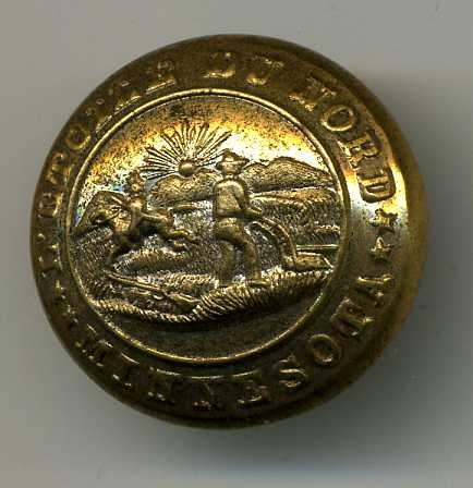 USA Minnesota State Brass Button. Face of button pushed in. Loop on reverse, with maker stamp " BOWLBY & CO ST PAUL MINN". Brass, 7/8 inch wide.
