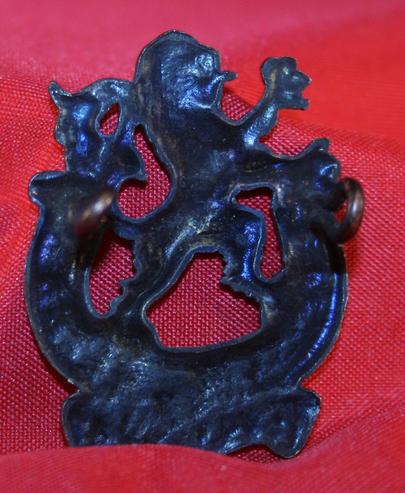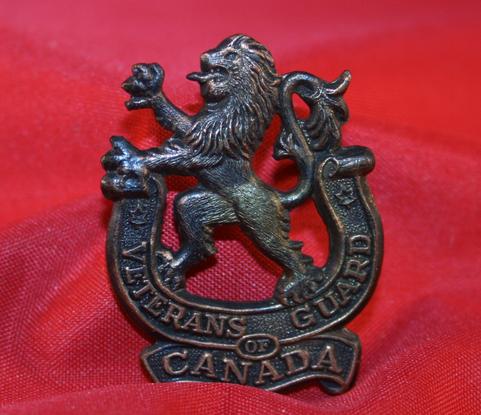 Veterans Guard of Canada Collar Badge. Dull bronze metal. Lion facing to left, lug fasteners. S21.