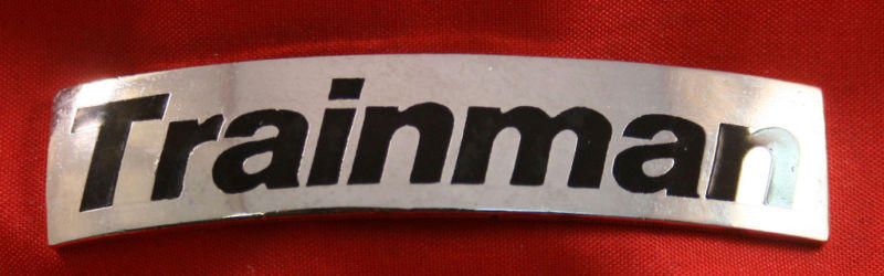 VIA Train Id Badge, White metal, chrome badge with black words Trainman. Two fold over fasteners on the back. I believe these are worn on the jacket. W SCULLY maker stamped.
