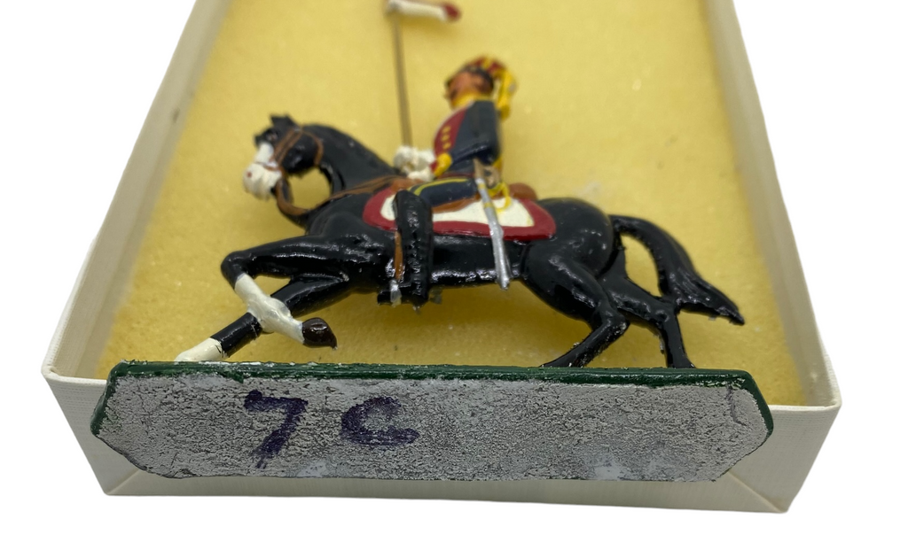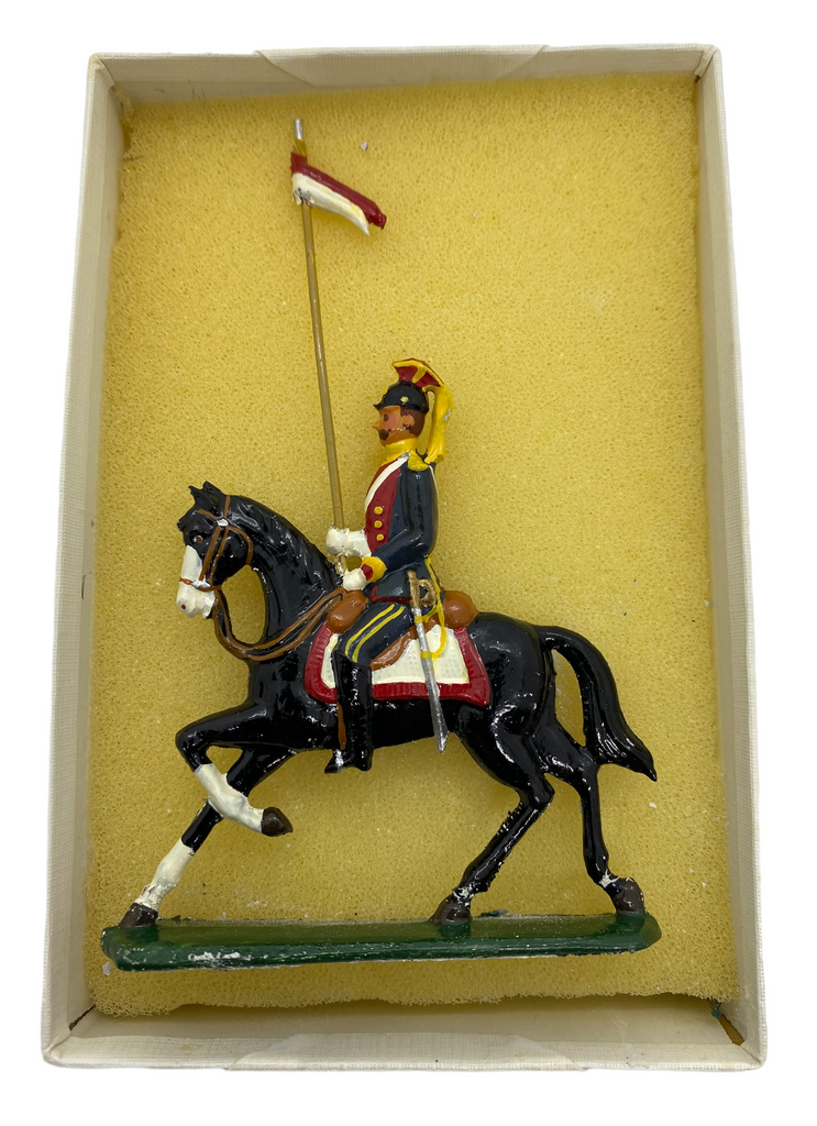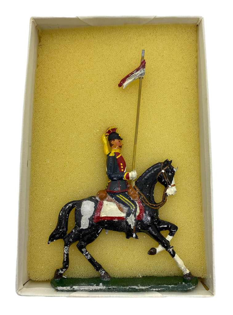A Vintage Hand Made & Painted Metal Soldier 5" Tall (with Flag). Shows Age & Paint Wear In Box of Issue.