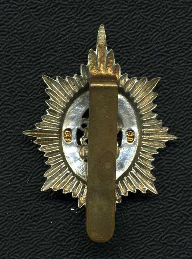 Worcestershire Regiment Cap Badge. White metal with brass overlays. Slider fastener on the back.