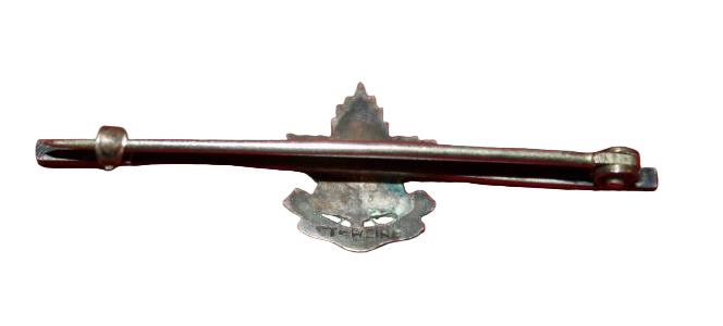 Small miniature cap badge likeness on bar. Marked Sterling. 46mm long by 15mm tall.