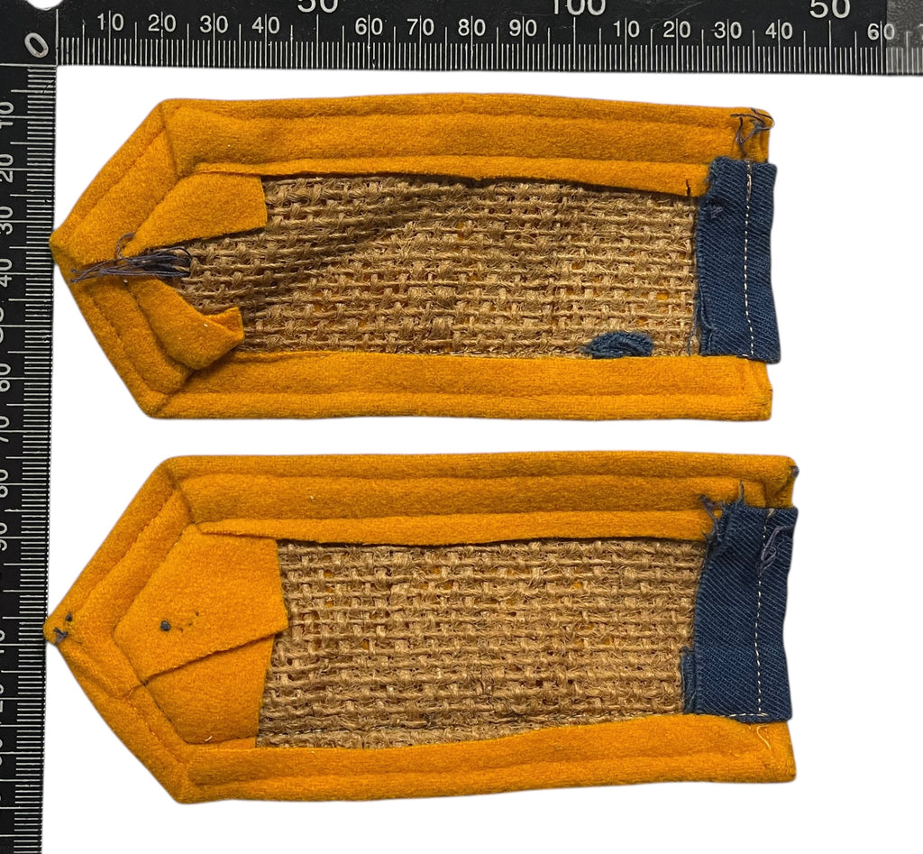 A matched pair of yellow and blue epaulet (constructed on burlap backing), with General Service buttons. Nice pair.
