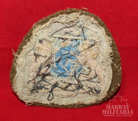 Thick stitch, padded. Likely British Issue. Shows use and wear. Blue in centre has nearly faded to off white.