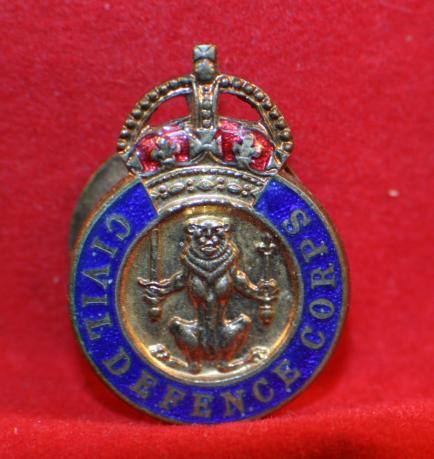 WW2 era, British, CIVIL DEFENCE CORPS words on a orange brass metal pin. Kings Crown with red enamel in it and words on blue enamel outer circle banner, with Lion design centre. Button hole fastener. Maker marked, what I can make out they put the fastener on covering most of the name, FATTOR?????NS, Ltd. over BARR St. BHAM. Shows slight age dulling but still nice.
