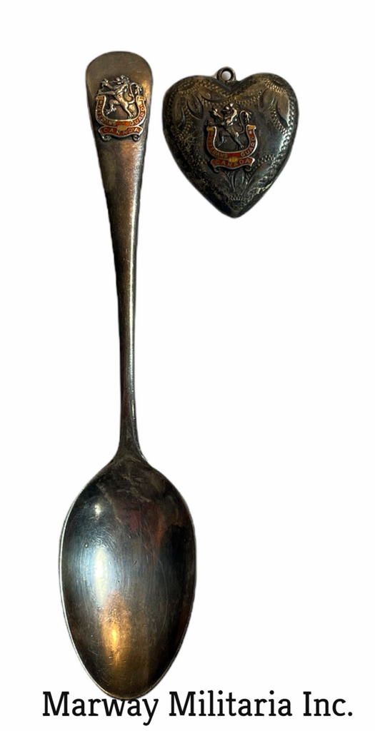 Lot of 2. Sterling hallmarked spoon with crest of the Veterans guard of Canada, locket is also sterling stamped, it opens. Nice age toning.