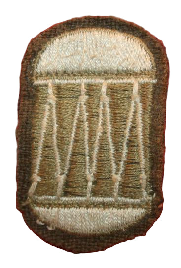 WW2 era Trade Patch. Drum shape, flat non padded, slight age dulled thread thread on khaki, thin black cloth backing. 36mm x 57mm. Nice patch.